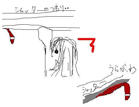しかも、今度はそのシャッターのへりから落ちてて、地面を体をブンブン振り回し、くねらせて、激しく動いてて・・・